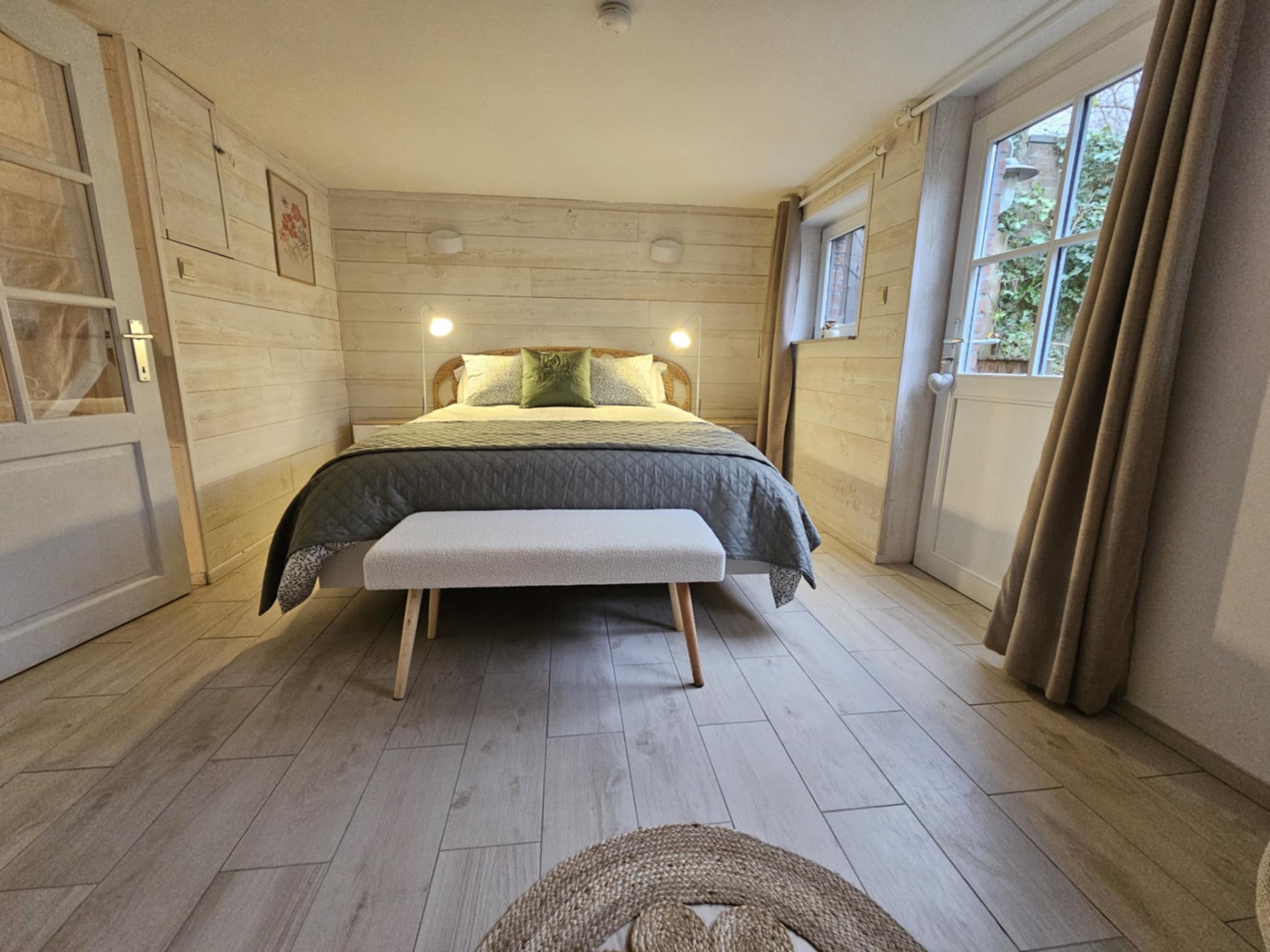 La chambre avec un lit de 160cm donne accès à une autre terrasse pour vos petits-déjeuners.