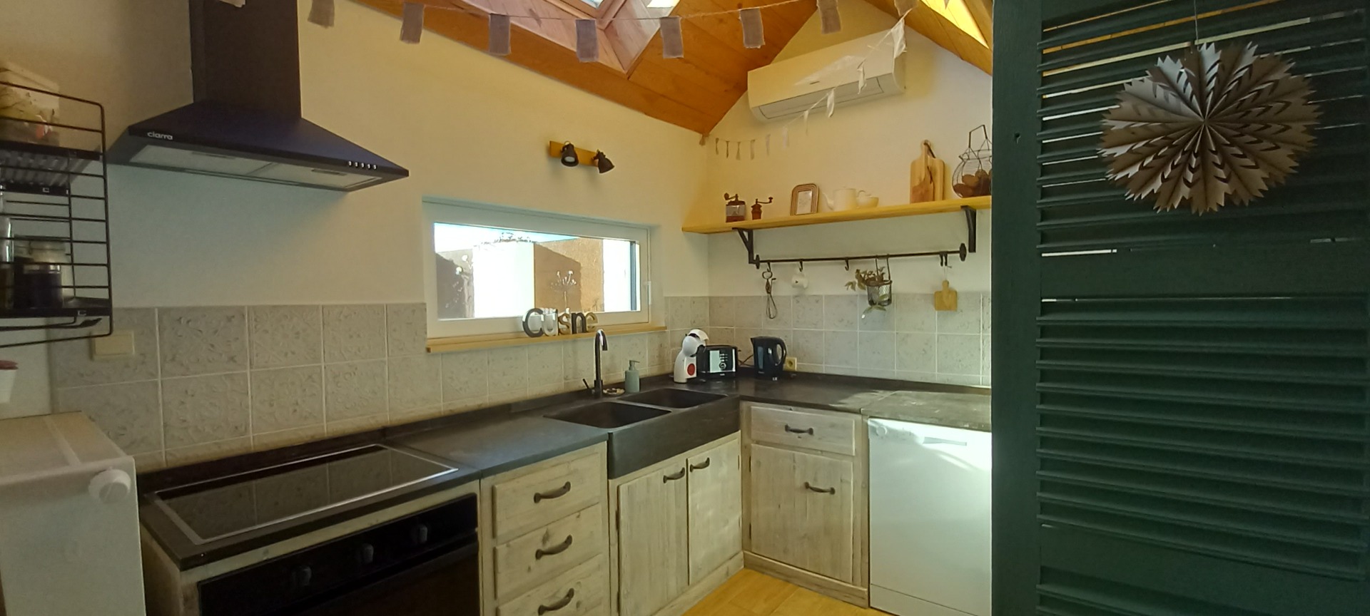 La cuisine équipée vous permettra de préparer de bons petits plats. Un coin salon pour un repos bien mérité après une promenade au grand air. Vous pourrez y écouter de la musique, lire, jouer à un jeu de société ou tout simplement admirer le vol des oies (origine du nom de notre gîte).